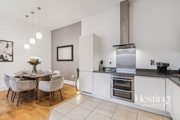 This stylish two-bedroom apartment in the heart of Henley-on-Thames offers high ceilings, elegant décor, and a bright, spacious feel. It features a super king and a king bedroom (one en suite), a family bathroom, and an open-plan living and dining area, plus a well-equipped kitchen, free Wi-Fi, and designated parking.
